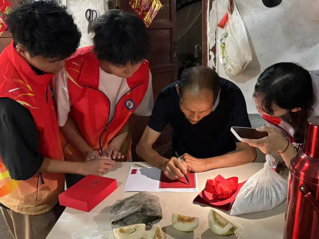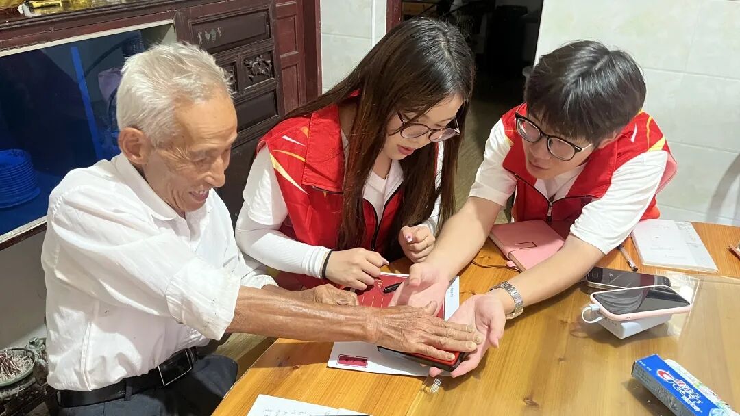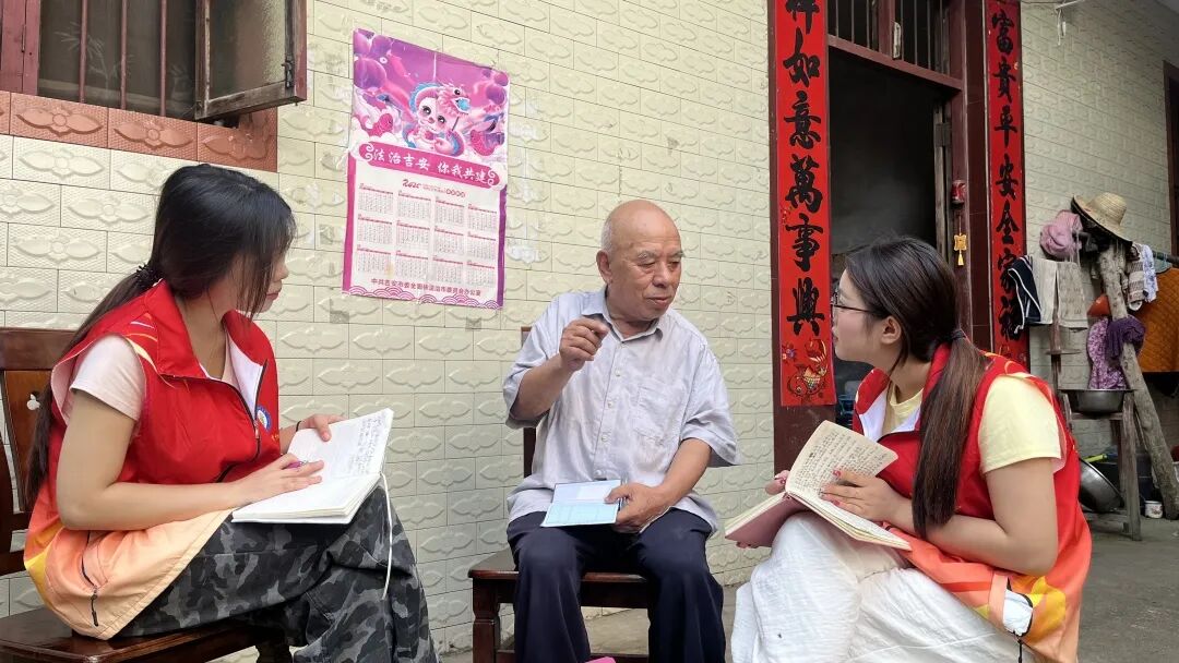 我校社会实践团队深入泰和县景丰村,与当地老年群众亲切互动,唠家常、话近况,为行动不便的老人捏肩捶背,还现场教学“八段锦”养生功法。红研智己红色文化研学队走进婺源县江湾镇敬老院,为老人们讲述红色故事,将先辈的热血与信念传递给在场每一个人。“创益”志愿服务队以“反诈安老、研学铸魂”为主题,在乐平市礼林镇鲍畈村为老人们开展兼具温度与深度的志愿服务活动,用青春力量为乡村注入温暖与活力。