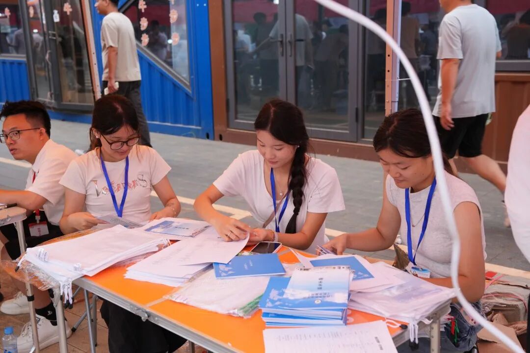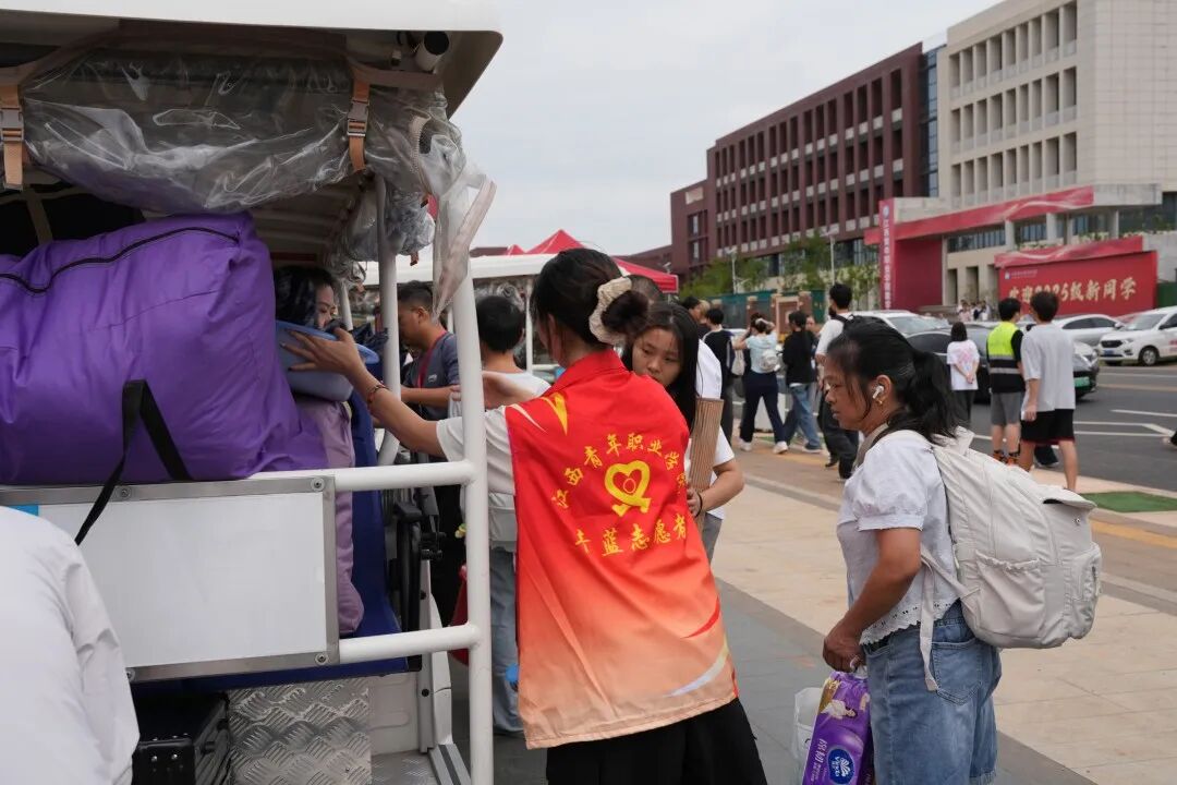 迎新现场,青蓝志愿者穿梭在校园各处:校门口问候、引导路线、搬运行李,细致解答报到流程与校园设施疑问。汗水浸湿衣衫,他们仍坚守岗位,用主动帮助与温暖叮嘱,将志愿精神融入每处细节,成为新生与青院间的温暖“桥梁”。