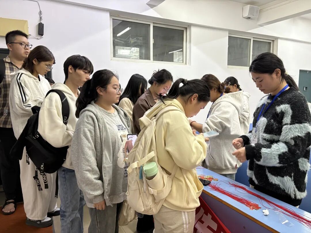 “原来中国结的每一个绳结都有讲究,‘盘长结’象征永续不断,‘福字结’承载美好祝愿,这和社会主义核心价值观倡导的和谐、友善是相通的。”参与活动的同学一边调整绳结松紧,一边分享感悟。在近两小时的编织过程中,同学们不仅体悟到传统技艺“一绳一结皆匠心”的精湛底蕴,更通过动手实践,将抽象的价值理念转化为可触摸、可感知的文化作品。当一个个凝聚巧思与温度的中国结完成时,大家互相展示、交流心得,现场洋溢着创作的喜悦与文化传承的热忱。