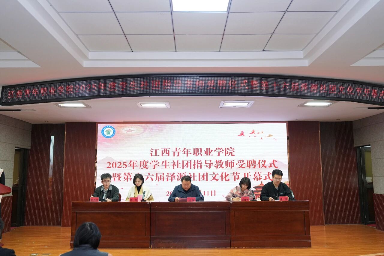 为活跃校园气氛,提升学生综合素质,丰富课余文化生活,共同打造充满活力的校园文化生态,11月11日,江西青年职业学院2025年度学生社团指导教师受聘仪式暨第十六届泽源社团文化节开幕式在行政楼多功能厅隆重举行。