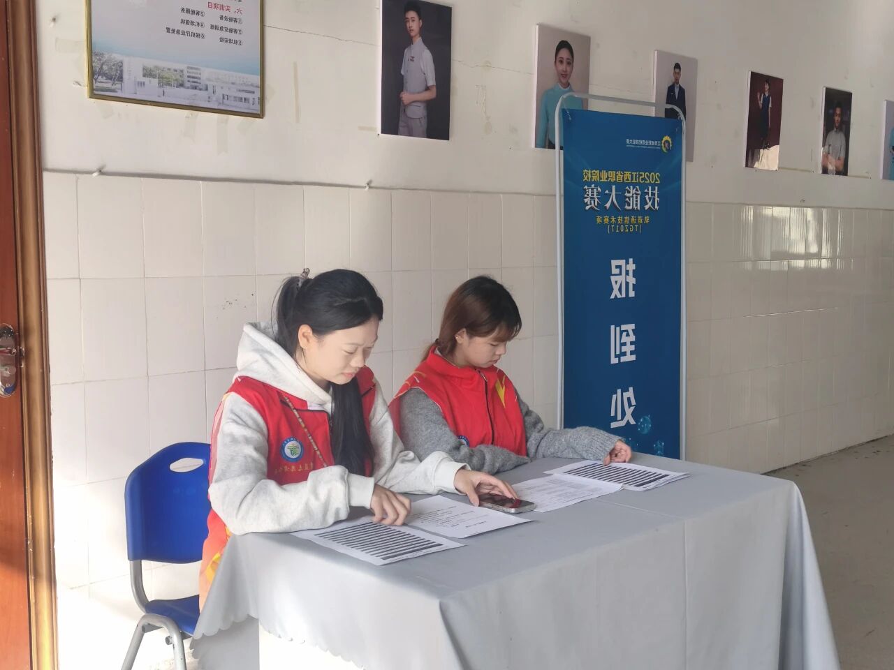 赛事当日清晨,青蓝志愿者提前抵达完成各项准备工作。在选手检录环节,严格落实二次加密规范要求,细致核对信息、引导入场秩序,确保参赛选手有序进场;竞赛期间,50名青蓝志愿者坚守岗位、分工协作,穿梭于赛场各个区域,积极配合现场负责人开展秩序维护、突发问题响应、物资补给配送、技术辅助支持等保障工作,以快速反应和贴心服务及时解决各类需求,为赛事平稳推进筑牢坚实防线。