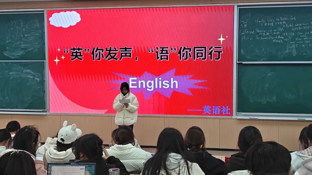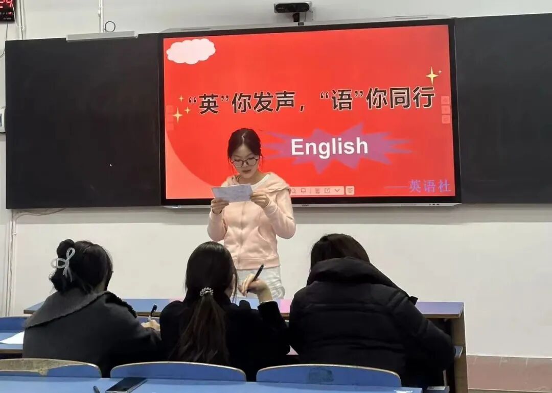 英语社以“‘英’你发声,‘语’你同行”为主题举办红色经典诵读活动,将语言学习与理想信念教育有机结合,同学们在声音中锤炼语言技能,在诵读中感悟革命精神。