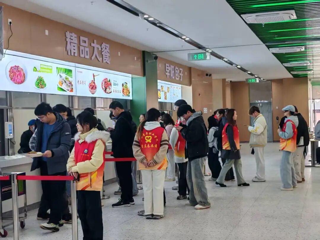 大家分工明确、协同配合、履职尽责:在食堂出入口,志愿者耐心疏导人流,保障通行顺畅;在打饭窗口前,引导师生自觉排队、文明取餐;在就餐区域,志愿者们穿梭巡回,温馨劝导同学们餐后及时将餐具归位、整理干净桌面。点滴行动汇聚成温暖力量,志愿者们以细致周到的服务,为食堂筑牢有序就餐的环境屏障。