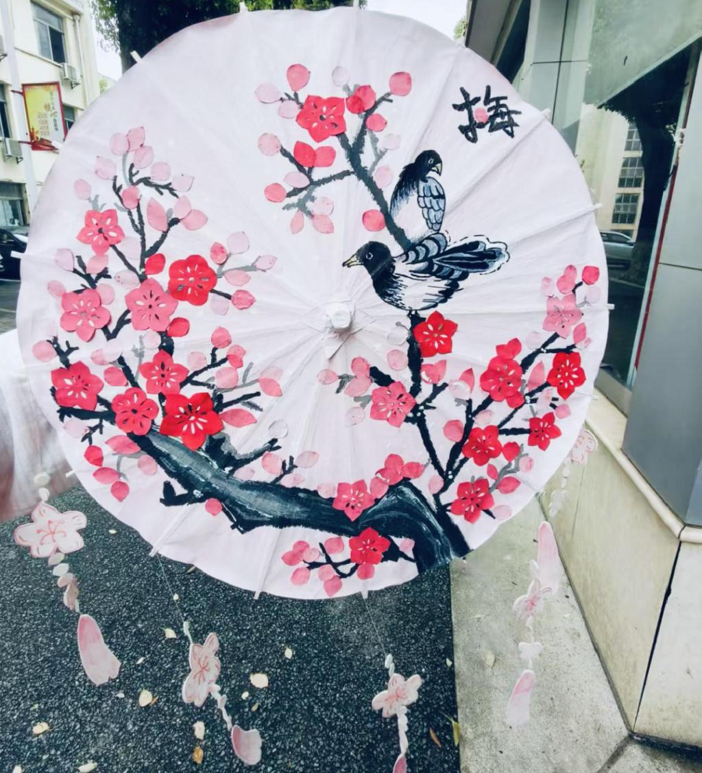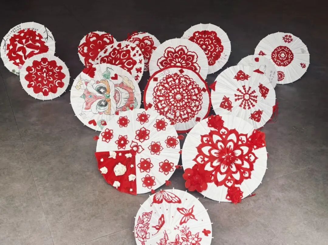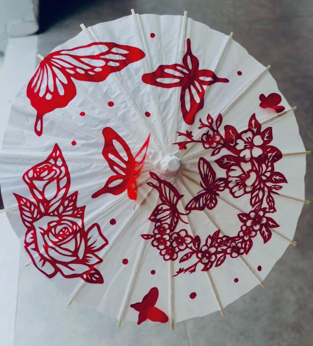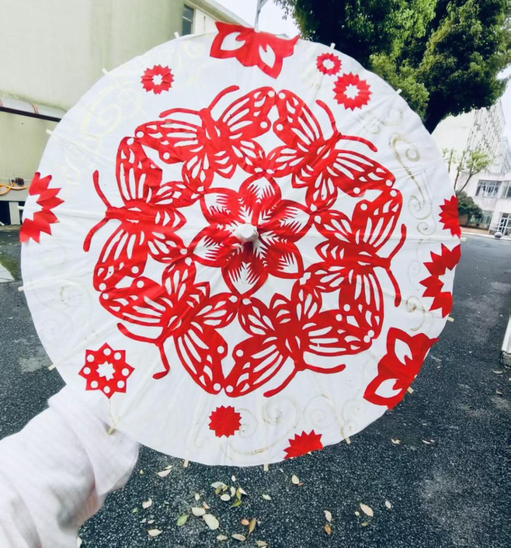 每一把精美油纸伞的诞生,都凝聚着同学们的心血与巧思。从挑选纸张、构思纹样,到熟练运用镂空、阴刻、阳刻等传统剪纸技法雕琢,使得原本古朴的油纸伞成为传承传统文化、彰显青春态度的艺术象征。创作期间,同学们还学习了剪纸与油纸伞的非物质文化遗产历史,在动手实践中领略传统工艺的独特魅力,更凭借年轻人的视角为非遗赋予新的活力,促使古老技艺在校园中焕发生机、广受欢迎。