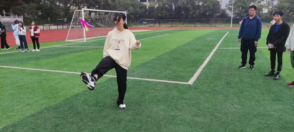 参赛学生个个精神饱满,自信十足,就连场外观看的学生也是跃跃欲试。虽然部分学生出现紧张失误的情况,秉着友谊第一比赛第二的精神给予队友鼓励,完成比赛。整个足球场上的比赛过程精彩不断,高潮迭起。