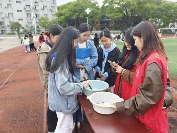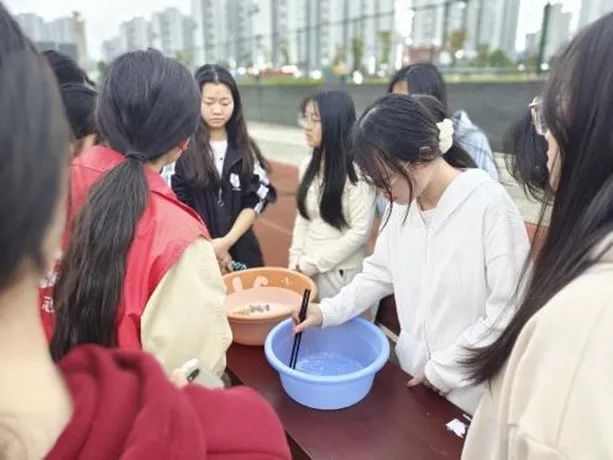 同学们快速地把筷子伸进盆中,一戳,一挑,一夹,再以迅雷不及掩耳之势丢进另一个盆中,动作行云流水,将“快、准、狠”发挥到了极致。那一颗颗滑溜溜如泥鳅般的弹珠,在同学们的筷子下,像是乖巧听话的鱼儿,就算挤在一起,也依然逃不出他的“魔爪”。