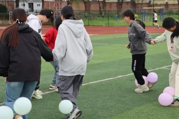 为增加运动会的趣味性,主办方特意为同学们量身设计了五人四足、夹弹珠、双人踩气球等集趣味性、协作性和竞争性于一体的项目。